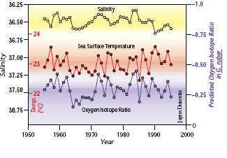 Good morning, could you give me the source of the above figure showing the Sargasso Sea Surface Tempratures for the past 3000 years as well as the top figure showing sea surface temperatures and oxygen-isotope-ratios from 1950 to 1999? Would appricate it. Thank you. John Mertens