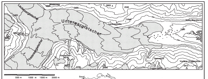Figure 1. Location map from Hormes et al 2001, showing location of finds in outwash plain of the Unteraargletscher.