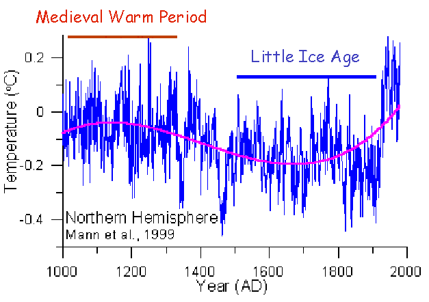 “The mean temperature of the earth suddenly began to rise in the early 20th century, after many hundred years of fairly insignificant variations. At least the warming of the last few decades seems to have been caused mainly by anthropogenic emissions of greenhouse gases. — From Mann et al., 1999”