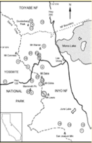 Figure 2. Location Maps of Whitewing Mtn and San Joaquin Ridge, eastern California