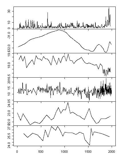 Series #11 particularly annoys me. It is percent globerigina bulloides – a cold water diatom – whose increasing percentage is inadvertently the most important world indicator of global warming in Moberg. Proximally it increases upwelling of cold water due to trade winds. It is also used as a proxy for increased precipitation in Treydte et al 2006 published in Nature 2006.