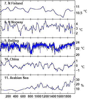 The downtick in #6 around 1500 is bigger in my re-plot of the data than is shown by Moberg. I haven’t gone through and exactly matched scales, so these plots are indicative.