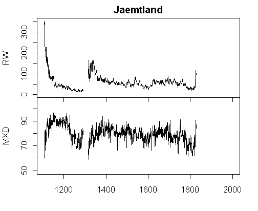 Both Gotland and Jaemtland are classified by Esper et al [2002] as "non-linear" sites, as opposed to other sites classified as linear. I’ve found the distinction (and the basis for the distinction) to be elusive. Now that I’ve got a bit of a foothold on a couple of series, maybe I’ll be able to figure it out.