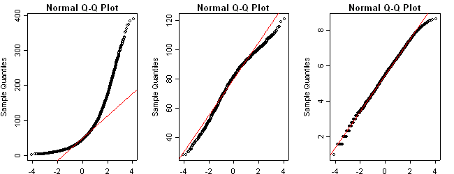 The qqnorm- normality plots are very similar to Gotland. The RW is strongly non-normal; the MXD shows a little close to normal than the histogram suggests; log(Rw,2) is close to normal, suggesting an overall log-normal distribution for ring widths over the entire sample (>22,000 measurements).