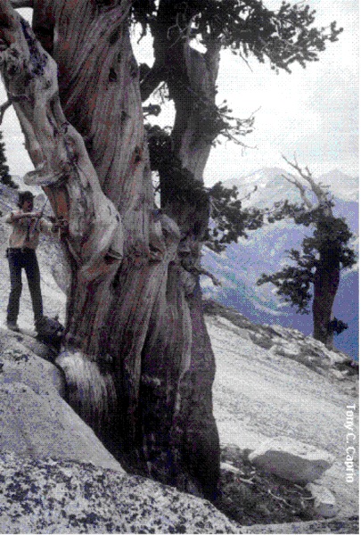 Figure 1. Timber Gap Foxtails. Left – Bogan http://essp.csumb.edu/capstone/proposals/images/bogan/bogan6.jpg; Right – Grissino-Mayer http://web.utk.edu/~grissino/images/foxtail.gif (Photographer – Tony Caprio)