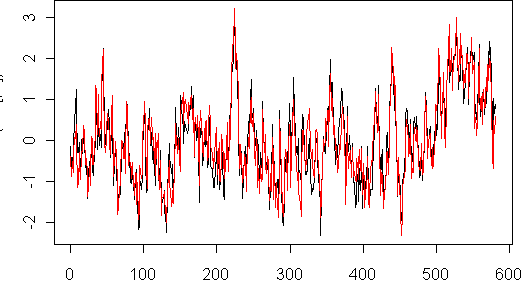If you do PCs using the correlation matrix, you cancel out the impact of the decentering. What Eduardo had done was to de-center the data, making a new matrix X, and then calculated the matrix t(X) * X – which is not a covariance or correlation matrix. However, doing SVD on this matrix will yield Mannian results, although they are not "principal components" within the definition of Preisendorfer, as they are not an analysis of variance. So it’s the description of the method that’s at fault – and, of course, the original method is at fault. But the algorithm used for checking is OK at this step. So my editorial surmises that VZ had not implemented this step "correctly" – in the sense of correctly implementing an incorrect method – were themselves incorrect and I’m updating and annotating accordingly.