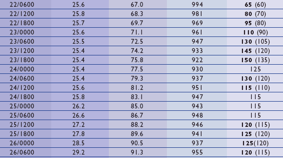 I spent 2 years at the JTWC on Guam as a Sat Analyst where we used the Dvorak method. While Dvorak’s method does offer a “fair” means of calculating storm intensity, it is a VERY subjective method. I was assigned to the JTWC for only 3 typhoon seasons, and before I transfered I made a suggestion to my CO that they hire civilians to long term contracts for this job, as it takes a minimum of 4-6 seasons to get the hang of it. Dvorak’s method is best used when air recon is unavailable; there were many times where our calculations had to be adjusted significantly when dropsonde data or surface data became available.
