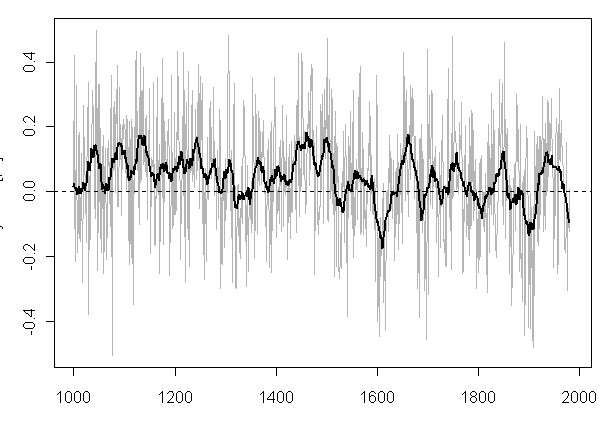 But here’s what’s amusing. In Juckes’ reconstruction #9, he forgot to flip the PC1. This is presumably the “coding error” mentioned above. Juckes undoubtedly realized what happened as soon as I pointed it out. Of course, he put the blame on me saying that it was me that was "having trouble interpreting" the reconstruction – as though this were my fault. I think that I’m interpreting this just fine.