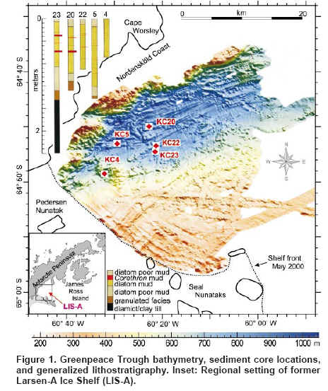 Reference: Stefanie Brachfeld, Eugene Domack, et al 2003. Holocene history of the Larsen-A Ice Shelf constrained by geomagnetic paleointensity dating, Geology, 31, 749-752.