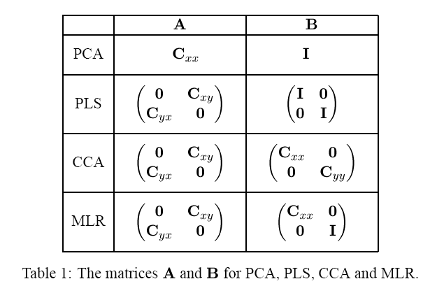 M. Borga, T. Landelius, H. Knutsson, 1997 A Unified Approach to PCA, PLS, MLR and CCA, Report LiTH-ISY-R-1992, ISYhttp://www.imt.liu.se/mi/Publications/Papers/LiTHISYR1992.pdf