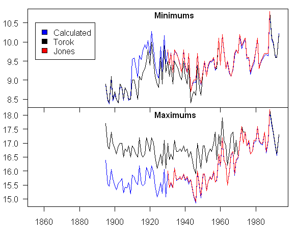 See here for a chart of just the Jones1990 TMAX and TMIN series.