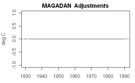 In the graphics shown, an upward adjustment in the past is an upward re-statement to increase past temperatures to compare with present temperatures and is more or less what one expects. So why do Ivesk and St Petersburg have opposite patterns? Why does Hansen think that the UHI in St Petersburg has declined in the past 15 years? Why does Hansen adjust for UHI at Cita, Siberia back to 1980 and then cancel out the adjustment going back to the 1930s? Why is there no adjustment at Magadan?