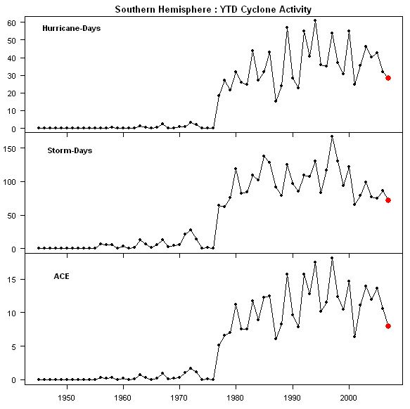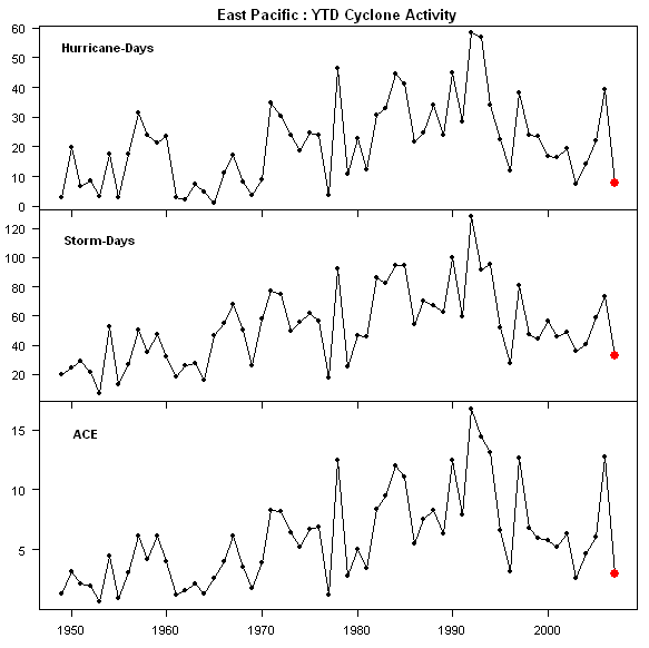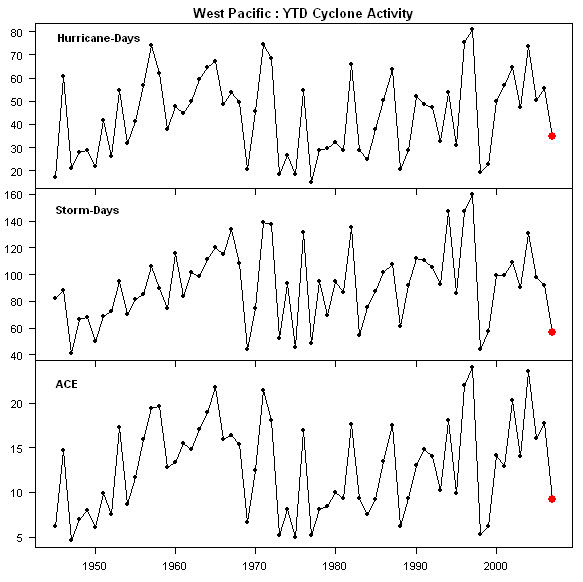 I’ve added graphics for the other 4 basins – 2007 YTD is very low in other basins as well. I guess Mann and Emanuel won’t be issuing a quarterly report on hurricane activity.
