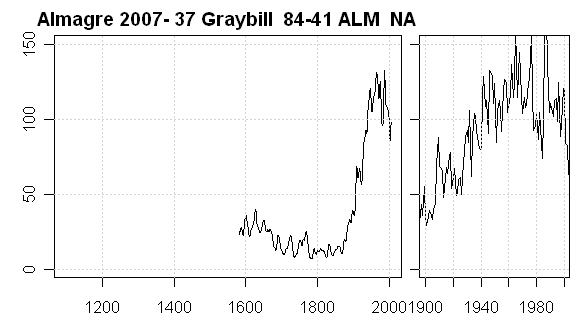 Also, on the graphs above, most come together about year 1800, especially the devil-devil 2007-28, which of itself is almost enough to question the whole method in the trees sampled – which I presume, would have been one of your working hypotheses.