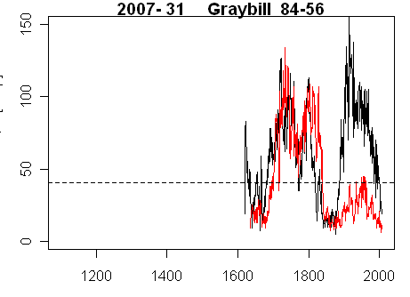 Graumlich herself did not publish a temperature reconstruction from these sites. The Team typically cites Lloyd and Graumlich 1997 as authority, but it doesn’t actually justify the use of these chronologies as a temperature proxy and doesn’t even present the chronologies now used. Lloyd and Graumlich 1997 discuss treeline changes, observing that the medieval treeline was higher than at present. Graumlich 1991 – which IPCC reviewers cited in their “justification” of continuing to use Mann’s PC1 – used nearby (but different) chronologies; she criticized the Lamarche-Graybill CO2 fertilization hypothesis observing that her chronologies did not show the 20th century growth pulse of the Graybill chronologies. After a number of years of effort on my part, some Graumlich foxtail measurement data was archived in May 2007 – a small bit of progress which I noted at the time, The archived information includes the measurements used by Esper (and subsequent Team articles relying on the Esper versions) , but not the earlier information used in Graumlich 1991 (where 20th century growth was said not to be anomalous).
