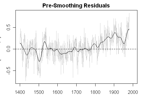 Figure. Smoothing the Mannomatic AD1000 PC1. Only the 1400-1980 period is shown.