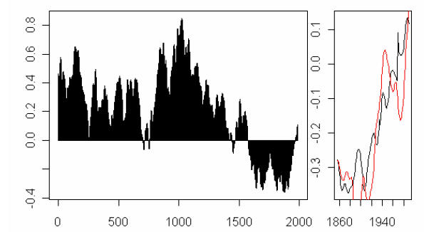 Figure 1. Briffa 2000-type reconstruction: black – canonical version; red- using Polar Urals update instead of Yamal.