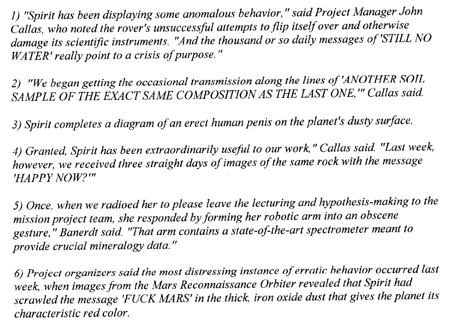 In response, NASA carried out the requested review concluding that “none of the Rover behaviors alleged in this web article are true”.
