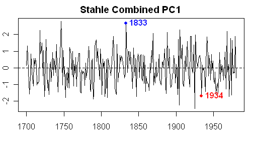 Steve M could you post (or let me know where to find) the numerical annual values for the Stahle Combined PC1 for 1900-1970? I’d like to compare those to some of the regional values, like May thru August precipitation. Thanks