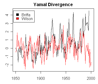 The divergence between Briffa’s Yamal and Wilson’s series is very characteristic of Siberian divergence.