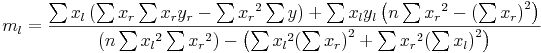 The two slopes returned are the left slope (ml) and the right slope (mr). During the calculations, the hinge point is considered to be a part of the “left-side”data. The formulas for calculating the slopes are: