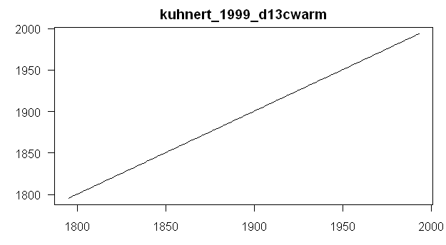 Here’s another interesting data series in the Mann archive of “original” proxies at WDCP, one which shows a remarkably linear trend. Now this “proxy” wasn’t used. I wonder what criterion it failed.