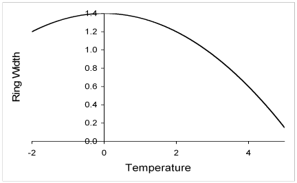 Figure 1. Hypothetical non-linear growth curve that shows a changing tree-ring width response to temperature changes (from Loehle, 2008).