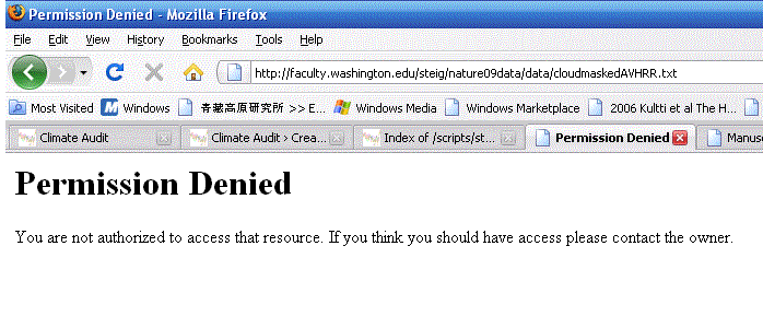 Permissions fixed indeed. I just left a voicemail at UW IT demanding access to Professor Steig’s data. This is the url to their IT site.