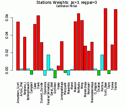 IMO, it’s extremely important to keep in mind that any of these methods merely yields weights for the stations. This particular calibration ends up with relative low weights for the Peninsula stations, slightly negative weights for the Southern Ocean islands – the usefulness of which has never been clear – and relatively consistent weights for continental stations.
