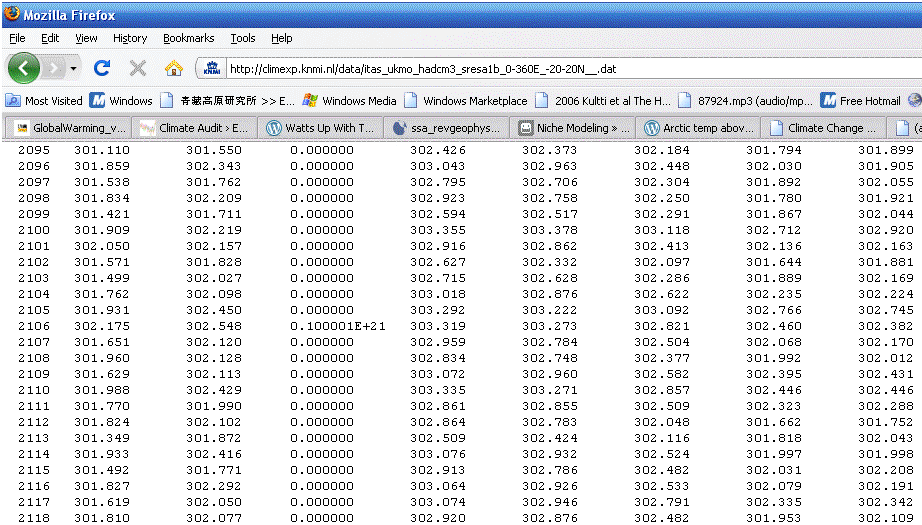 Here’s another odd UKMO CM3 output from KNMI – March values in this slice are all absolute 0 except for March 2106.