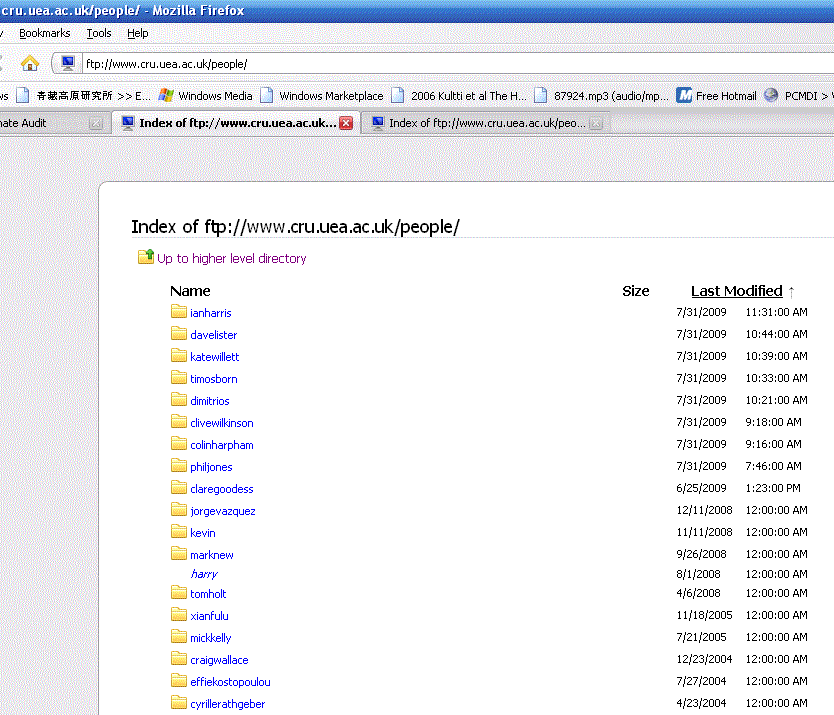 This is part of a broader lockdown at CRU. Ian Harris, Dave Lister, Kate Willett, Tim Osborn, Dimitrios, Clive Wilkinson and Colin Harpham all altered their FTP directories this morning. Only one directory (Tim Osborn -see below) has added material.