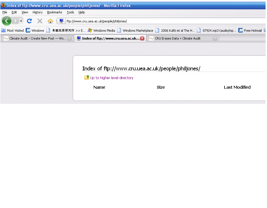 The next day, on July 28, Phil Jones deleted data from his public file – see screenshot with timestemp in post here, leaving online a variety of files from the 1990s as shown in the following screenshot taken on July 28, 2009.