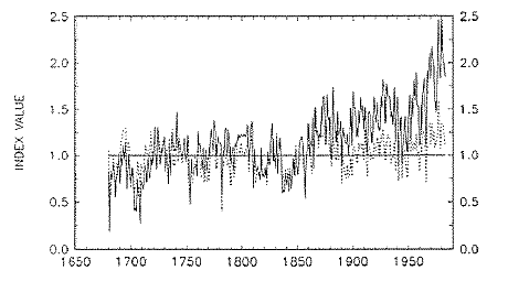 Figure 5. Re-plot of Graybill and Idso average width series.