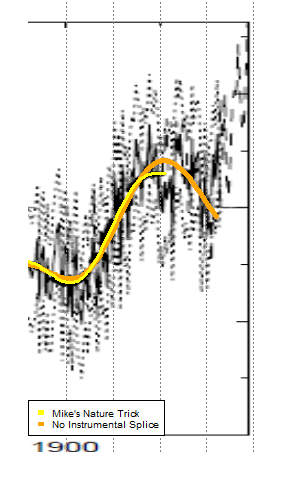 I don’t think the Nature trick has been described adequately in your post. It isn’t just graphing the instrument record for comparison, but graphing it to ‘hide the decline.’ They didn’t just cut off the proxy value and add on the instrument record from 1961 on; they used the instrument temperature values to calculate smoothed average value for earlier years as well. That is the ‘trick,’ to let the instrument record replace actual values of the data that are lower than you want.
