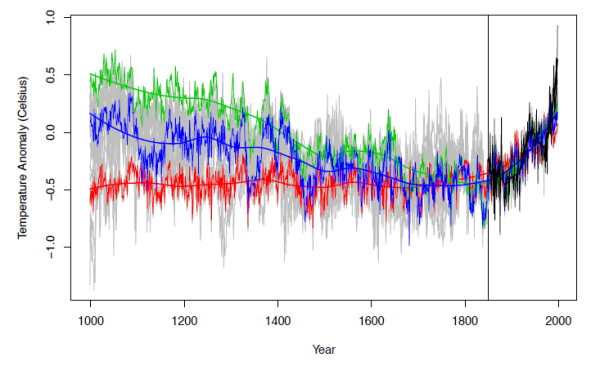 Another thing I’ve had a lot of doubt about is the accuracy of the scaling of the proxy values into temperature values. An overlap with instrumental data of only a century doesn’t seem like a very accurate method due to the large amount of noise in both proxy and T data.