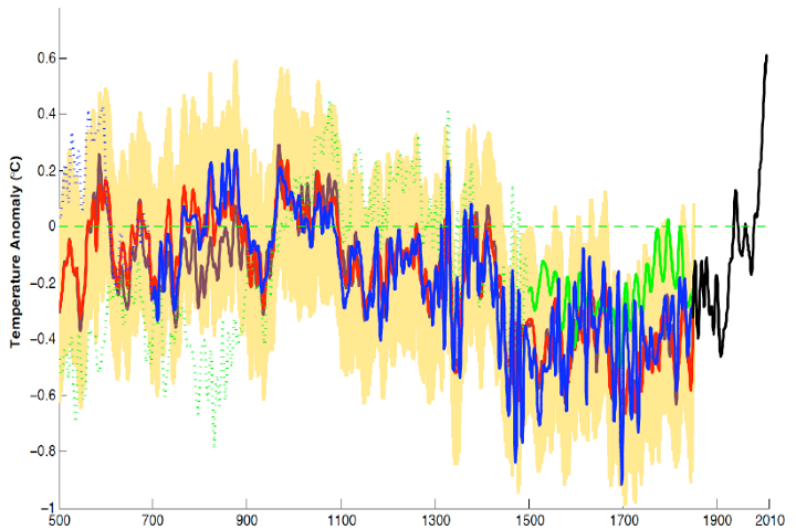 The significance of the achievement of a 1300-year reconstruction was emphasized in the accompanying Penn State press release (itself the basis of numerous stories in the specialized press and blogs):