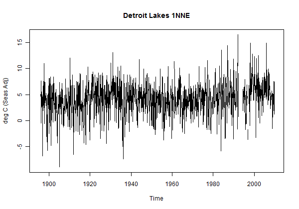 ts.plot(u,ylab="deg C (Seas Adj)",main="Detroit Lakes 1NNE")
