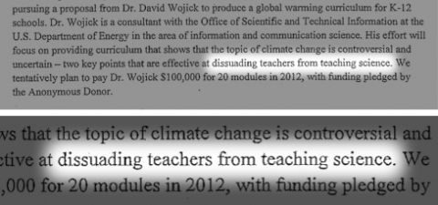 The co-ordinated effort to undermine the teaching of climate science in US classrooms has been noted before, but this still takes the breath away. Let’s just repeat that sentence so it can be fully digested: “His effort will focus on providing curriculum that shows that the topic of climate change is controversial and uncertain – two key points that are effective at dissuading teachers from teaching science.” But the dropping of jaws doesn’t end there. Next up, we learn that Heartland paid a team of writers $388,000 in 2011 to write a series of reports “to undermine the official United Nation’s IPCC reports”. Not critique, challenge, or analyse the IPCC’s reports, but “to undermine” them. The agenda and pre-ordained outcome is clear and there for all to see.