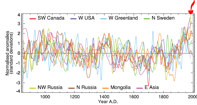 needless to say, seems the 2008 pnas paper showing that without tree rings still solid picture of unusual recent warmth, but McIntyre is getting wide play for his statements about Yamal data-set selectivity.