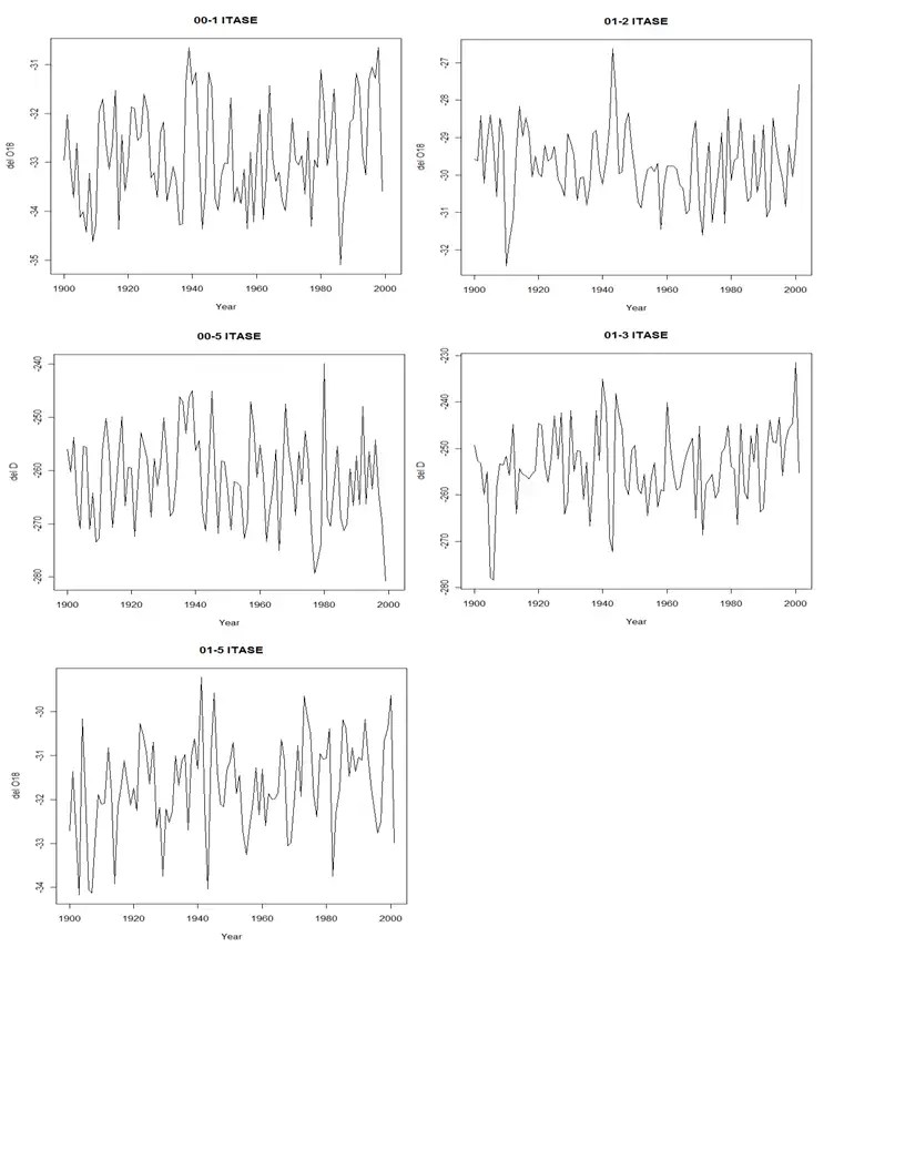 Here I want to record six plots from six ice cores from Siple Dome data that are linked below (first link). Of interest to me generally in this matter is analysis of temperature proxies that are closely located.