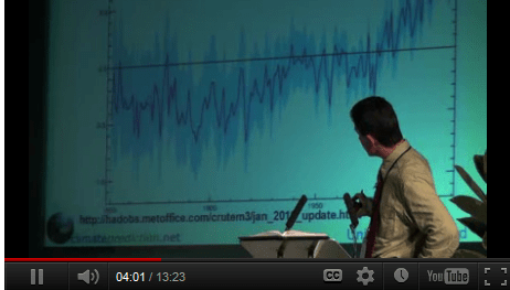Next time you want to make a presentation telling reporters that they shouldn’t focus on the paleo record but rather the thermometer record, you might be wise not to try to turn that into a talk about how the media got climategate wrong. Try to bite off less– stick to just discussing the thermoter record and why you think it tells us that the world has warmed and it’s because of man.