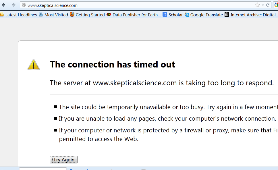 […] Steve McIntyre wrote: Update: Both Lewandowsky’s University of Western Australia blog shapingtomorrow and John Cook’s skepticalscience blog appear to have blocked me. Other readers report that they can access these sites, but here’s what I get. […]