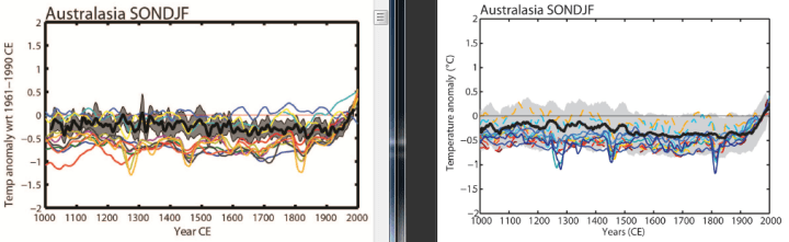 although the Gergis/Karoly team has not itself been too consistent or rigorous about when they are describing Australia and when they are talking about a wide region “Australasia”…. and as I recall their paper set definite long/lat boundaries for their Australasia region but then went outside that box without explanation or justification in using some proxies….