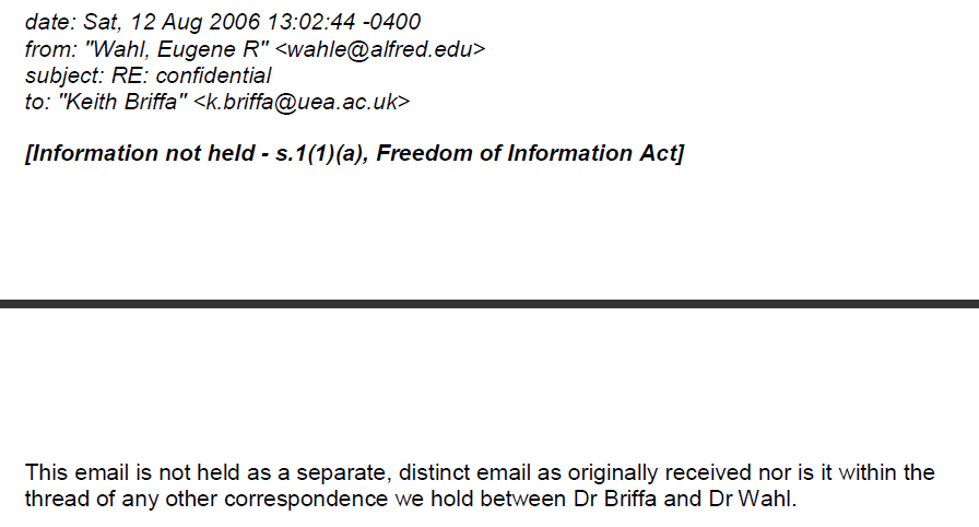 CA reader Duke C has some results from his FOI request that look like they bear directly on my longstanding appeal for the Wahl attachments that the UEA purport to be unable to locate on the backup server.