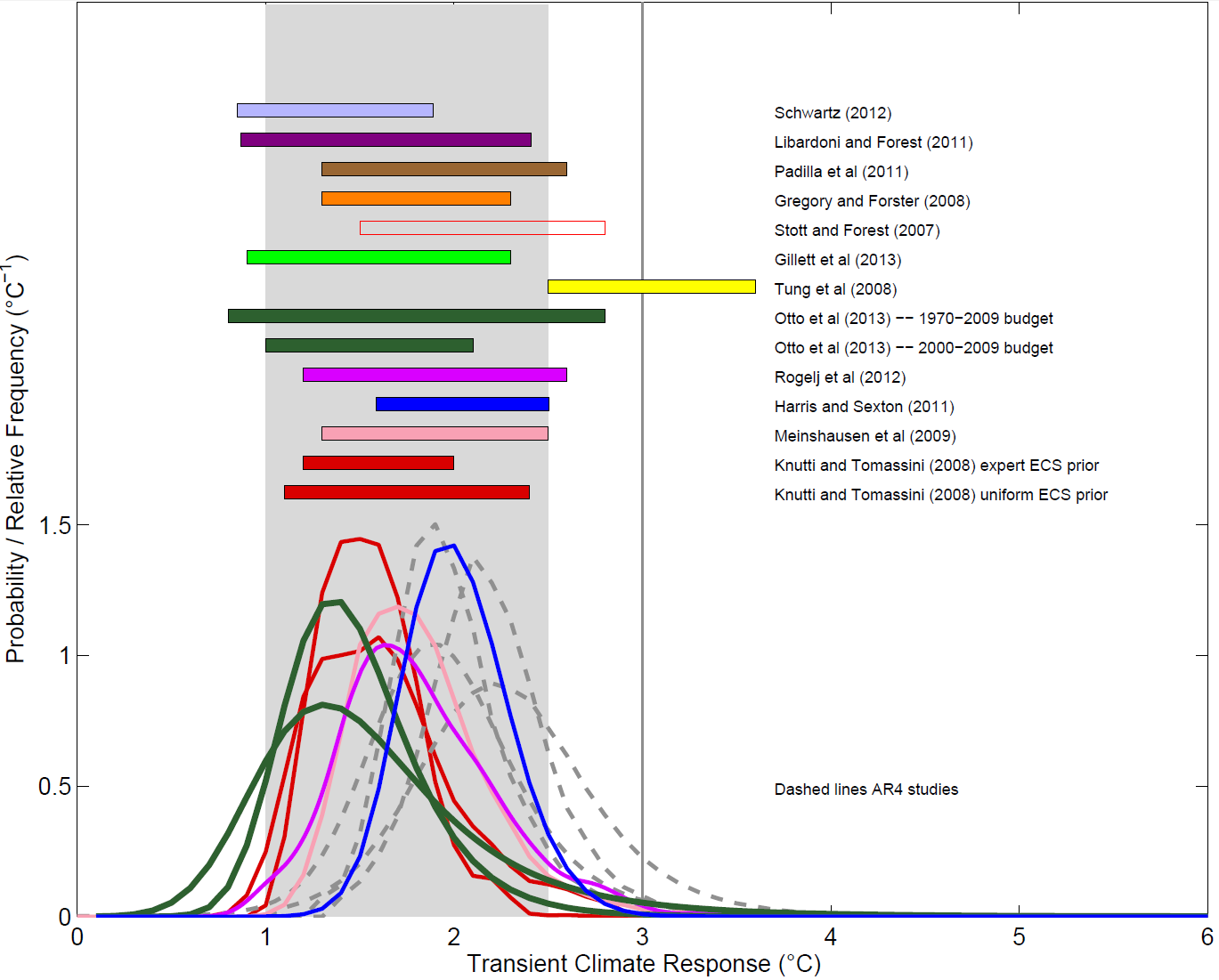 [i] Note that the PDFs and ranges given for Otto et al. (2013) are slightly too high in the current version of Figure 10.20a. It is understood that those in the final version of AR5 will agree to the ranges in the published study.