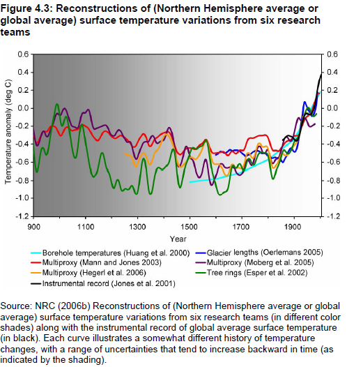 Whereas CEI had pointed (albeit with incorrect identification) to the IPCC 2001 diagram (under Mann’s lead authorship) as an example of “artful deceit”, EPA’s response considered the diagrams in the NAS 2006 report and IPCC AR4, stating that these diagrams showed “no evidence of any “artful deceit.”