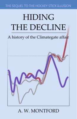 Figure 1. Left – IPCC AR3 Figure 2-21 showing variations of the Mann et al 1999 reconstruction, the Jones et al 1998 reconstruction and the truncated Briffa et al 2001 reconstruction. Right- cover of Hiding the Decline, showing the actual Briffa reconstruction from data in Climategate dossier.