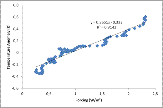 of S 17. 91% of the temperature variance is due to the forcing changes.