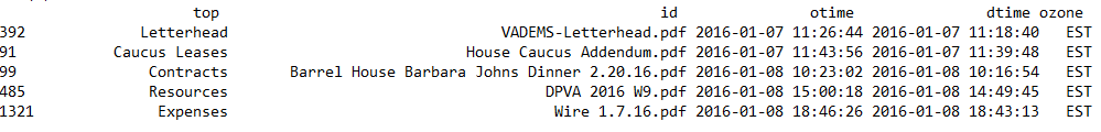 I first extracted the 7z dossier from 7z into a Windows directory after first setting my computer to UTC. (I originally did this in Eastern, but eventually settled on UTC with the objective of simplifying analysis.) Using R, I then sequentially extracted document names in each directory down all directory and subdirectory trees, keeping track of the directory tree and document name. This resulted in 2105 documents without unpacking the zip directories (which contained stale documents anyway.)