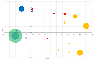 The next step was to perform a principal component analysis of the data from which the graph above was plotted. Again from the Supplementary document: